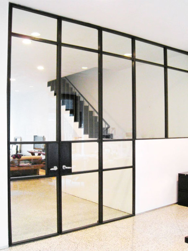 Как правило, такая перегородка состоит из нескольких одинаковых металлических блоков прямоугольной или квадратной формы. Внутрь элементов вставляют как обычное стекло, так и триплекс или стемалит, выбор материала зависит от задачи перегородки, места ее установки, типа крепежа, допустимой весовой нагрузки на конкретную опору.